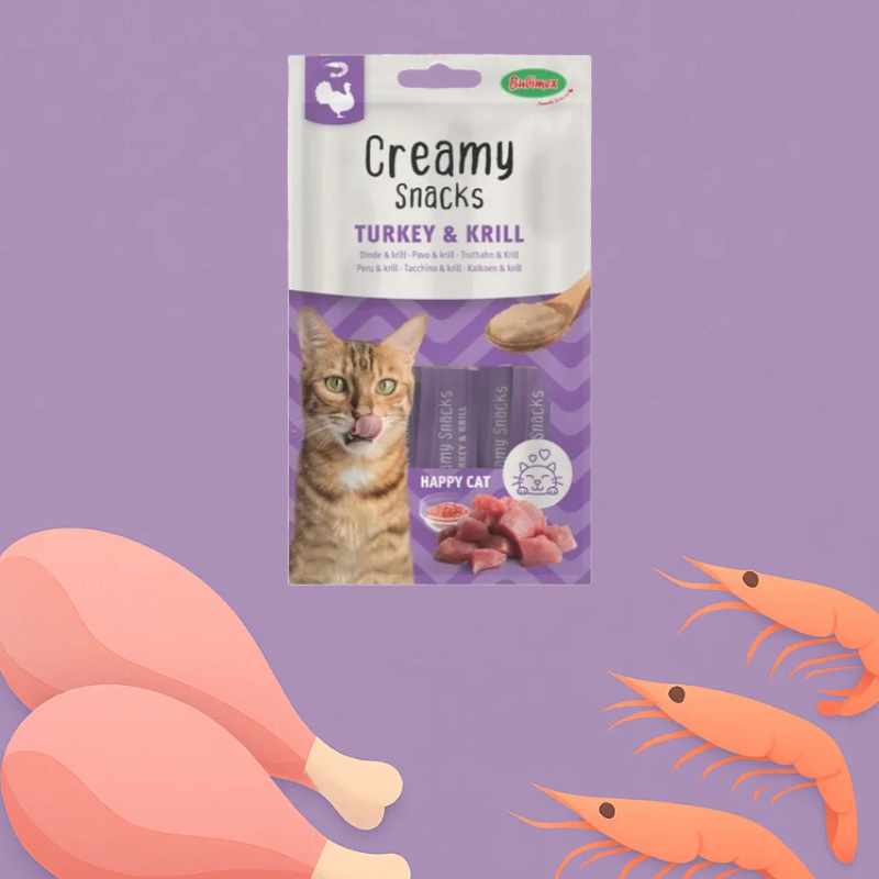 L’association de la dinde, source de protéines maigres, et du krill, riche en acides gras oméga-3, fournit une combinaison nutritive bénéfique pour la santé de votre chat. La texture crémeuse de ces friandises facilite leur consommation, que ce soit en récompense, pour masquer un médicament ou simplement pour renforcer votre lien avec votre animal.